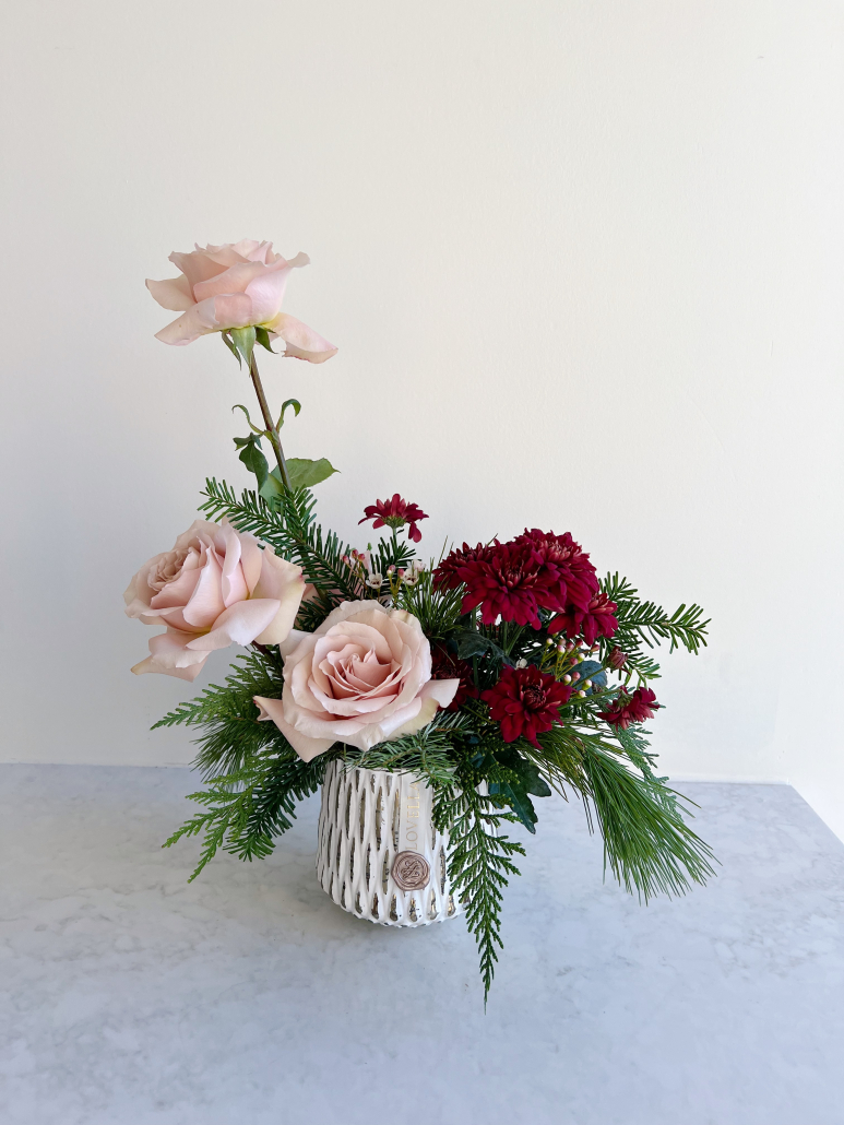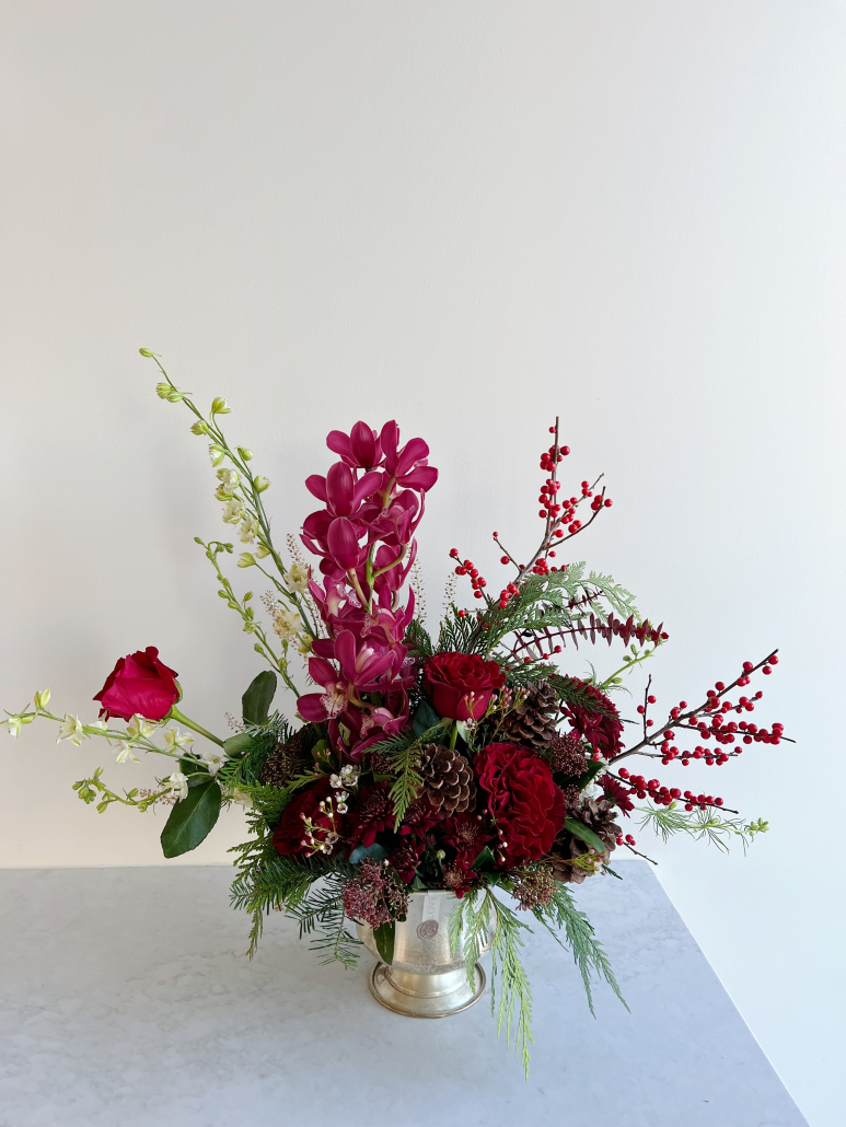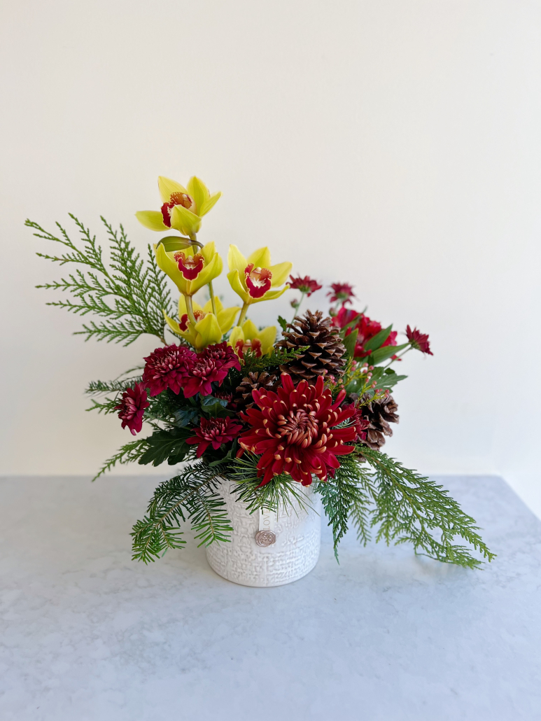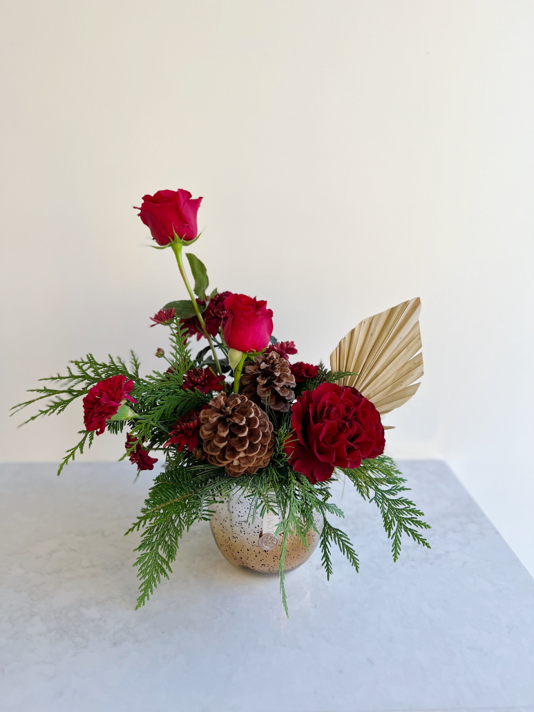 We have had so many requests to ‘make something beautiful – we trust you!’, so we decided to offer it as an option! Select a budget, and we will take care of the rest. We will surprise your recipient with a beautiful Designer’s Choice floral arrangement, using the freshest available florals, infused with the spirit of the holidays. The arrangement will come in a container so it’s ready for displaying as soon as it arrives!